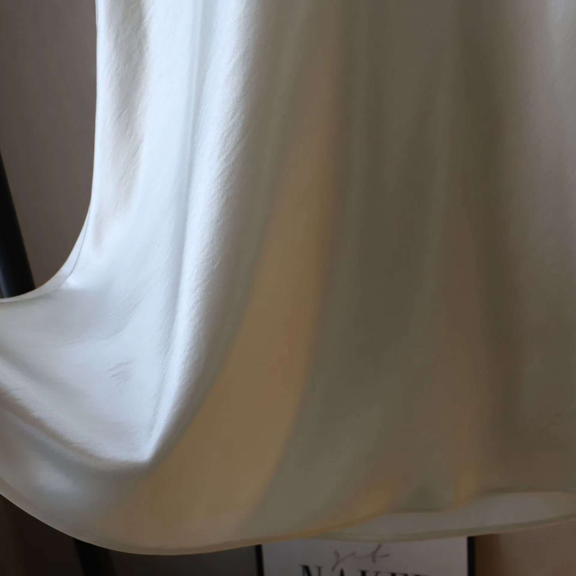 Satin Silk Midi Skirt / Cream White