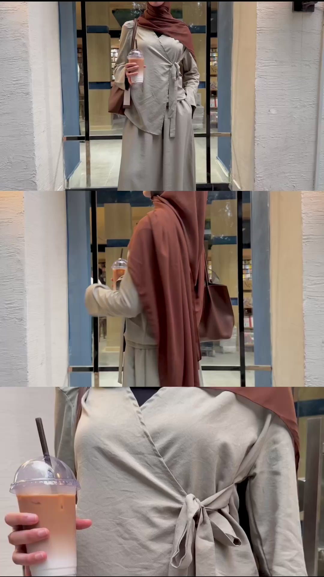 A two-piece outfit crafted for modern modest dressing. The set features a wrap-style shirt with a side tie and a flowy A-line maxi skirt, both designed in a soft sage green tone that feels fresh, timeless, and effortlessly chic.